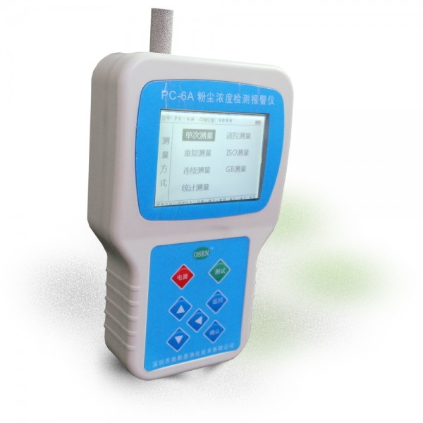 PC-6A粉尘浓度检测仪(以下简称珍式粉尘仪)主要用于工矿企业中粉尘颗粒物(PM10,或PM2.5,TSP)的浓度检测及超标报警。具有粉尘浓度测试报警和尘埃粒子计数功能,并配有环境温度和相对温度测试装置。仪器具有体积小,携带方便,测试速度快,灵敏度高,稳定性好,重量轻,操作简单,全中文实时快速显示,交直流两用等特点。