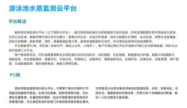 - 产品/服务:OSEN-WATER 武汉市泳池多参数水质自动监测系统