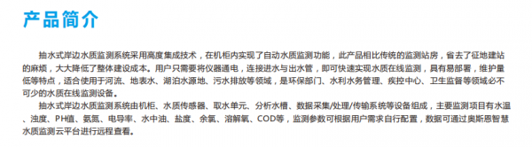 - 产品/服务:OSEN-SZ 岸边水质COD氨氮溶解氧余氯电导率监测站