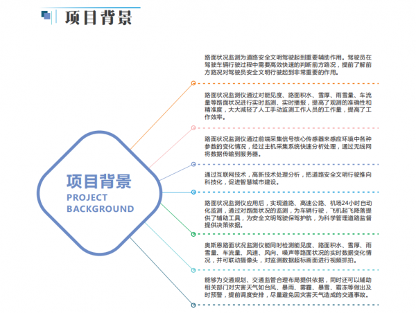 该路面状况监测系统组网简单、实用可靠,将传统的分散式监测集中为智能一体,。
