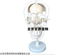 模型按标本复制,按构成颅骨的各块骨的正常位置和顺序置于支架上,以便于观察各骨之间的毗邻关系以及内外两侧、上下各面的结构特点及孔、管、沟、裂等。
