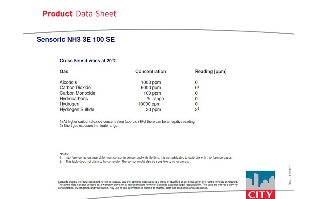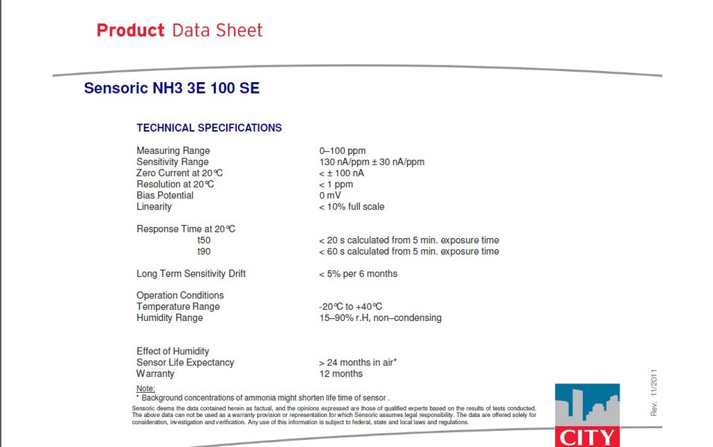 CITY 3E100SE(4)氨气气体传感器0-100ppm 产品介绍: