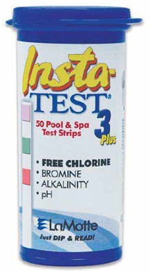 Insta-TEST®3Plus型泳池和Spa检测纸条,可检测游离氯0-10ppm,溴0-20ppm,总碱度0-240ppm和pH值6.2-9.0。瓶装,多种包装规格可选。