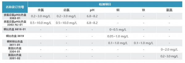 2、标准色板:余氯总氯、pH、铜、铁、氨氮可选
