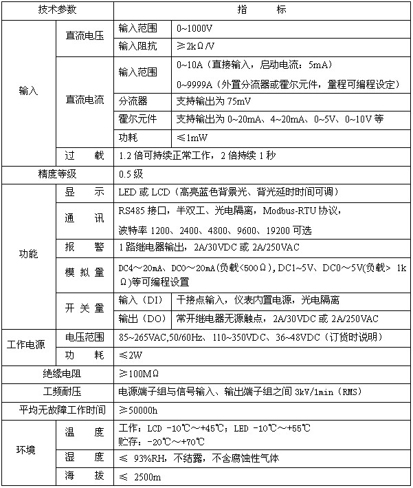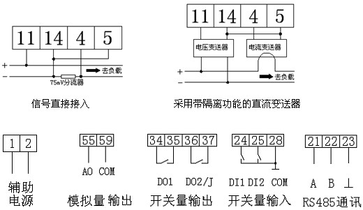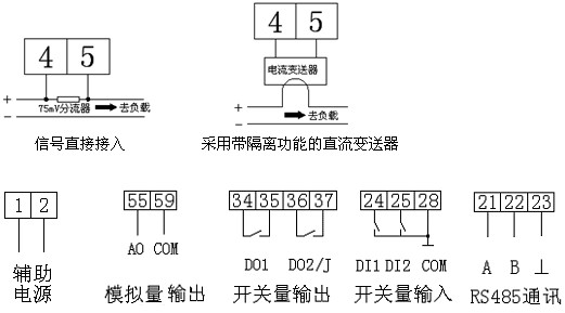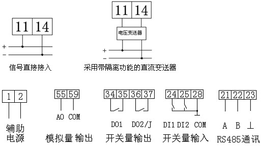 仪表可具有RS-485 通讯接口,采用Modbus-RTU 协议;可带模拟量输出、继电器报警输出、开关量输入/输出。根据不同要求,通过仪表面板按键,对变比、报警、通讯、开关量输出进行设置与控制。