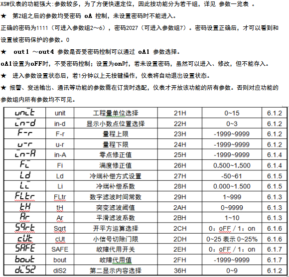 4、可选配1~4点报警输出。包括测量值上限、测量值下限、偏差上限、偏差下限、偏差绝对值五种基本报警方式和与五种基本报警方式对应的五种待机报警方式。(待机报警方式:指仪表通电时即使处于报警区域也不报警,当测量值进入不报警区域 后建立待机条件,此后正常报警)。