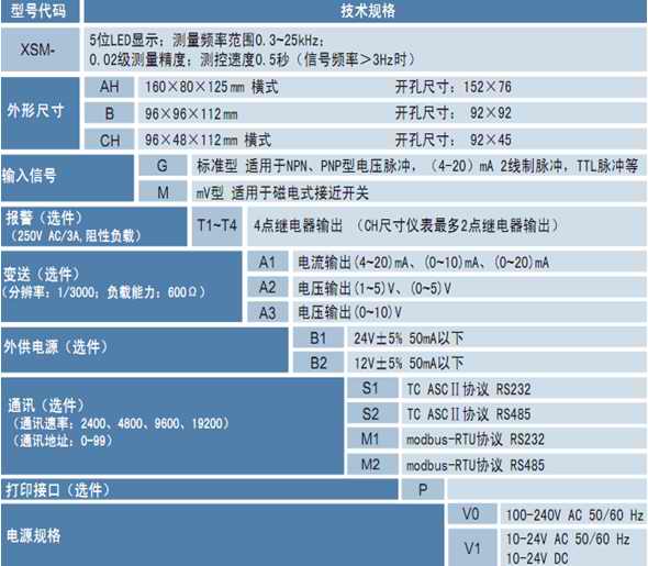 ① 配接各类接近开关、编码器或各类脉冲信号。测量转速、频率、线速,测量频率范围0.1Hz~25kHz,基本误差±0.02%,5位LED显示