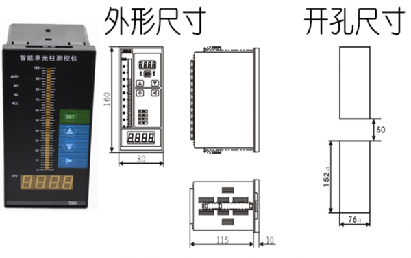 4、外形尺寸:160×80(横/竖),96×96,96×48(横/竖),72×72,48×48以及台式实验室用仪表