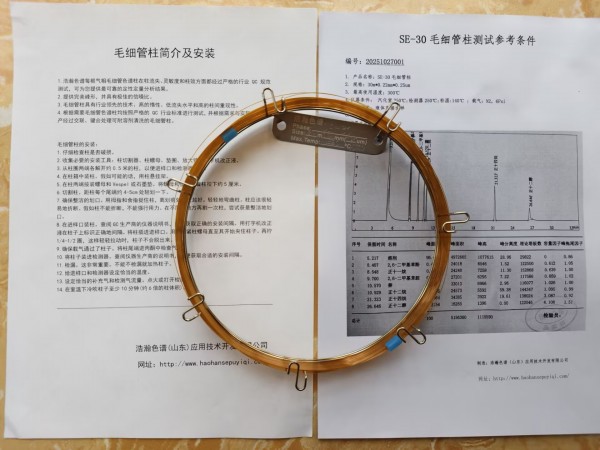 SE30毛细管色谱柱是一种在气相色谱分析中常用的非极性色谱柱,其固定相为100%二甲基聚硅氧烷(或称甲基硅氧烷)。它根据化合物沸点差异进行分离,适用于分析各类非极性或弱极性化合物。
