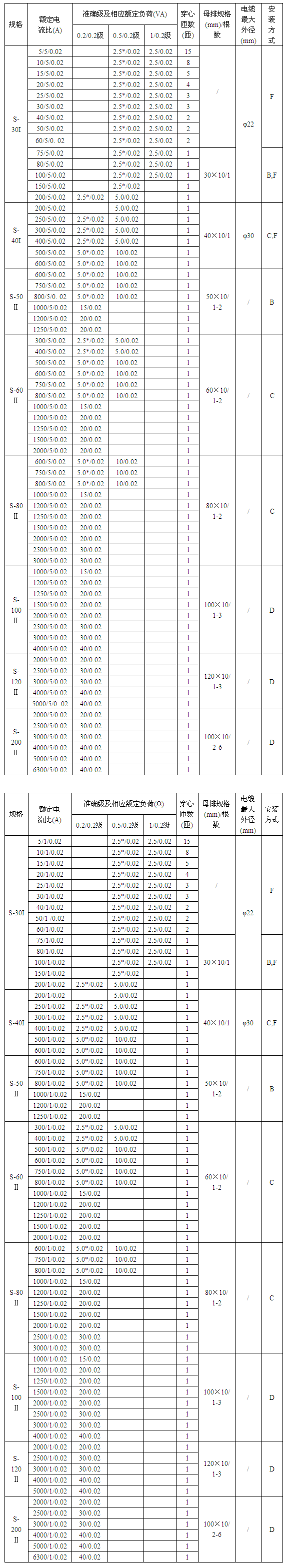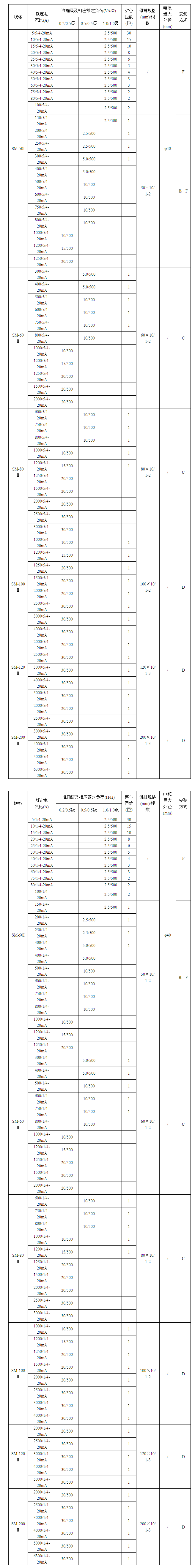 注:准确级及其相应额定负荷栏中有“*”标注的为特殊规格,订货时请说明。