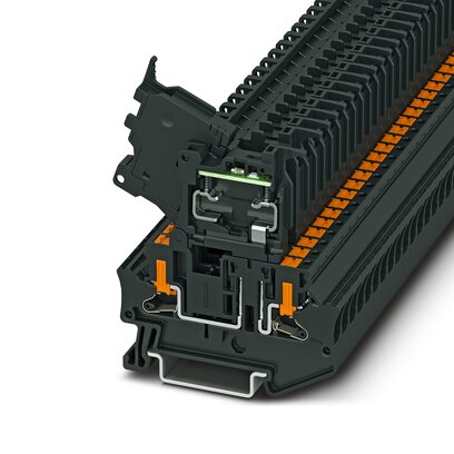 保险丝接线端子, 保险丝类型: 玻璃 / 陶瓷 / ..., 保险丝类型: G / 5 x 20, 标称工作电压: 24 V, 额定电流: 6.3 A, 接线方式: 直插式连接, 第一层, 额定接线容量: 4 mm2, 接线容量: 0.2 mm2- 6 mm2, 安装方式: NS 35/7,5, NS 35/15, 颜色: 黑色...