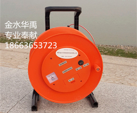 测量时,拧松绕线盘后而的止紧螺丝,让绕线盘自由转动后,按下电源按钮(电源指示灯亮),把探头放入水管内,手拿钢尺电缆,让探头缓慢地向下移动,当探头的触点接触到水面时,接收系统的音响器便会发出连续不断的蜂鸣声,此时读写出钢尺电缆在管口处的深度尺寸,即为地下水位离管口的距离。