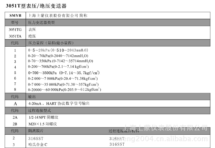 免责声明:以上所展示的[3051T2A21AM4B4E 3051T型压力变送器]信息由会员[上海上蒙仪表股份有限公司]自行提供,内容的真实性、准确性和合法性由发布会员负责。
