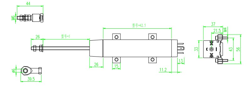 2、 机械行程(mm):有效行程+7mm(每端缓冲3.5mm)