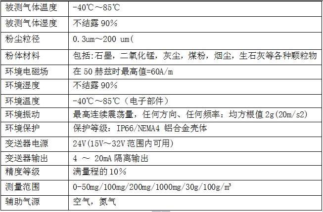 五、在线粉尘检测仪技术参数