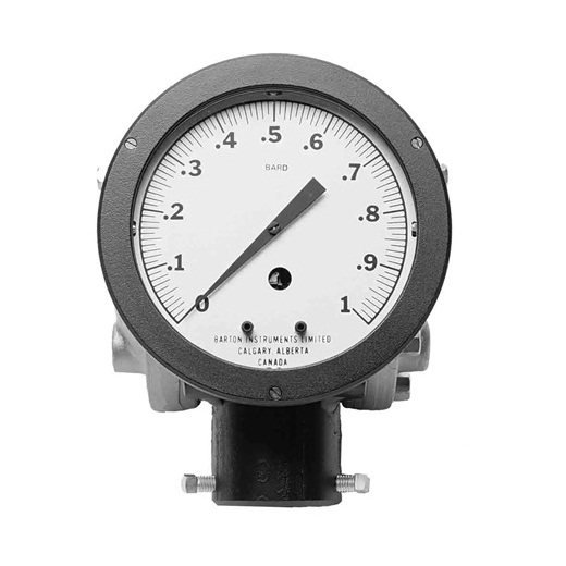 压差指示器 Barton Model 227C DP Range: 0-10 M WC Pressure Housing Material: 316SS Bellows Material: 316SS Safe Working Pressure: 1500 PSI Process Connection: 1/4" FNPT Scale Markings:0-10 M WC Scale Color: B