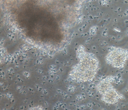 状态:镜下黑色,多为多形,培养液一般会浑浊,血清很多没做支原体阴性检测,而支原体是牛血清中常见的微生物之一。而且它不能用过滤的办法除去。支原体感染细胞以后,细胞病变不很明显,只是慢慢死去。