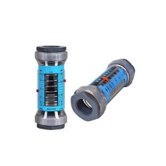 K-6014水平型塑管流量计是一种变面积流量计。其主体材质是聚碳酸酯(pc)或聚砜(psu),具有耐高温,高压等特性。由于浮子是在弹簧的压缩作用下运动,而且浮子本身由PVC材料加工,重量轻,所以该流量计可以安装于任意方向角度的管道中。同时,红色的流量计指示标尺可以让用户直观,简捷的控制流量。