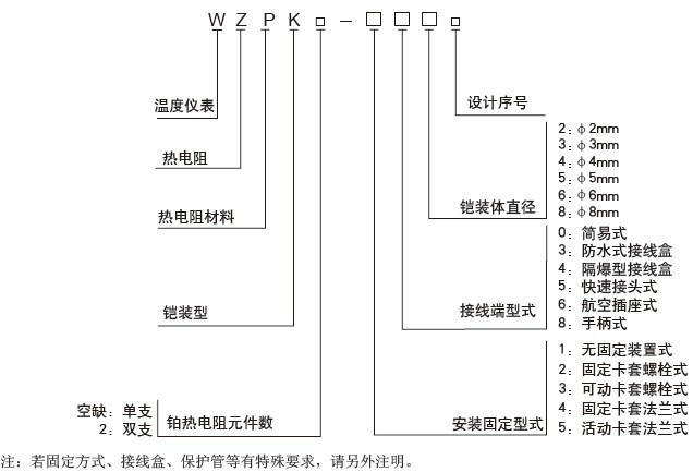 WZPK铠装铂热电阻具有细长、容易弯曲、热响应时间快、耐振动、耐温、抗压和坚固耐用等优点。它可用作直接测量,也可以作为装配式铂热电阻的内芯元件,以取代传统瓷珠串套式元件。尤其适宜安装在管道之间狭窄、弯曲和要求快速反应,微型化等特殊测温场合。铠装铂电阻可用于测量(-200 ~+500)℃范围内温度。