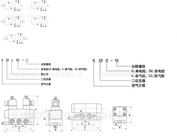 二位五通换向阀K25J、K25系列,厂家直销,无锡海万生产。