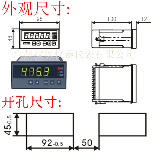 ② 外形尺寸:160*80(横),96*48(横),96*96(方)