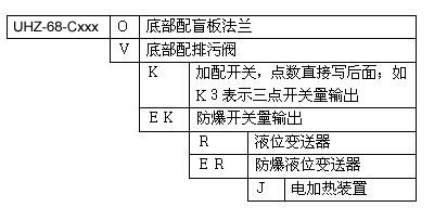 UHZ68系列磁翻板液位计的命名规律为: