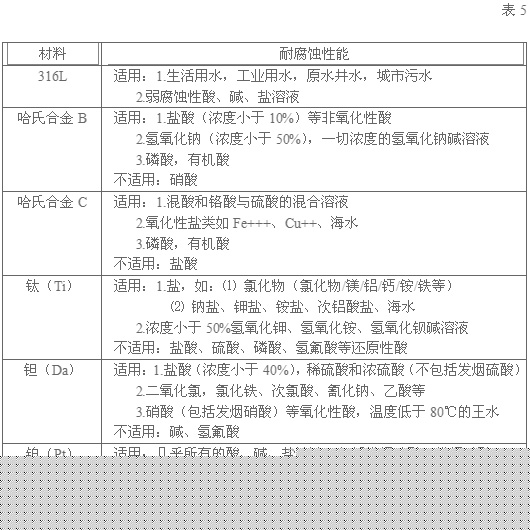 若不能确定选用何种衬里材料及电极材料请参照第七部分“电极和衬里耐腐蚀材料一览表”