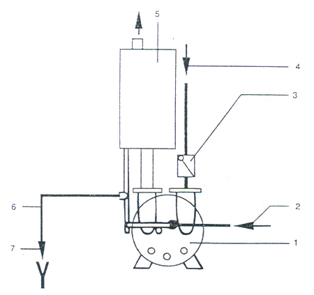 1. 2BV 真空泵 2. 供水管 3. 逆止阀 4. 吸气管 5. 气水分离器 6. 排气管 7. 溢水管