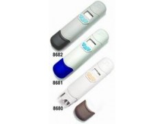 经济笔型酸碱计,双屏幕可同时显示温度与酸碱值(8681/8682);温度补偿功能,三点自动校正,简易操作。具有IP67级数防水功能;自动补偿/辩识溶液温度避免校正错误;资料保留功能,省电关机可解除。