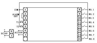 通讯方式RS485,接点式开路报警,DC24V馈电输出,AC90~265V供电,数字式指示。