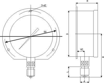 不锈钢耐震压力表的外壳用不锈钢材料制成(简称半钢),可在有腐蚀性、振动较大的恶劣环境中使用。