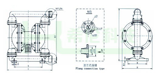 五、QBY铸铁气动隔膜泵主要连接尺寸