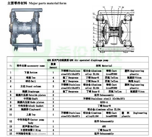 六、QBK铸铁气动隔膜泵主要零件材质说明