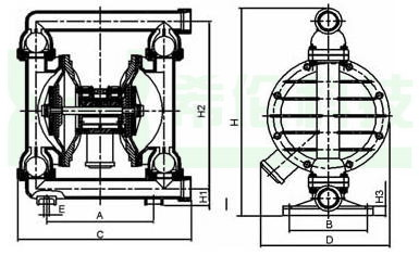 一、QBK铝合金隔膜泵工作原理 在隔膜泵的两个对称工作腔中,各装有一块有弹性的隔膜,联杆将两块隔膜结成一体,压缩空气从泵的进气