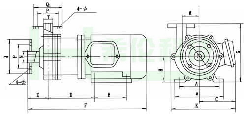 型号 | A | B | C | D | E | F | G | H | J | a | K | M | N | 机座螺孔 | P | P1 | Q | Q1 | φ | φ1 | |