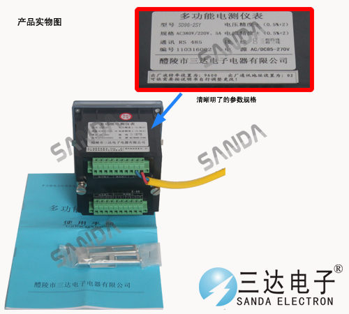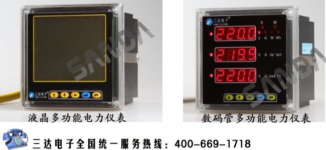 三达电子生产的多功能电力仪表概述:多功能电力仪表能够测量三相电网系统中所有常用的电量参数:三相电压、三相电流、有功功率、无功功率、功率因数、电网频率、有功电能、无功电能,并带有通讯接口和电能脉冲输出功能。采用MODBUS-RTU通讯协议,实现LED现场显示和远程RS-485数字通讯。