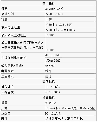 VP6130 CYBERTEK品牌电压探头是一款高性价比的高压差分探头,差动测量电压高达1300V(DC+Peak AC)。探头必须与示波器的BNC头(BNC必须提供地电位)连接使用。探头具备良好共模噪声抑制能力,两个输入端都有较高的输入阻抗和较低电容,可以准确高速地测量差分电压信号。