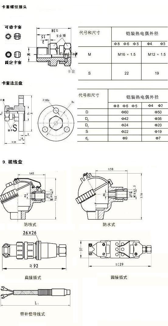 | 套管材质 | E﹑J﹑T | 1Cr18Ni9Ti | 1Cr18Ni9Ti |