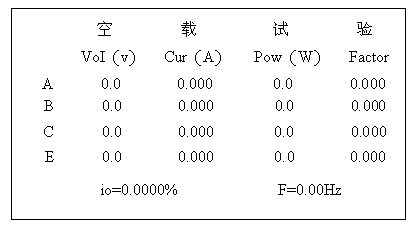 显示方式分别为空载试验、短路试验,开关状态为空载试验,按“∧”键实现显示方式转换。