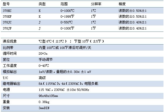描述 378温度控制器是一款高性能的工业级数字显示,使用K,J,T和E型热电偶的单设定点比例开闭控制器。热电偶增益和冷端由温度控制器内