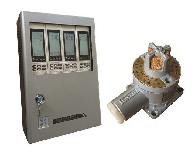 探测器把采集到的气体浓度信号转换为电信号,并以(4-20)mA标准信号的方式传给控制器;控制器采用分线式设计,一路控制器对应一路探测器,控制器接收探测器单元传上来的(4-20)mA信号,经过处理、逻辑分析,以液晶数字光柱同步显示、声光报警的方式反应出来,记录报警时间和报警浓度值,并启动所连接的风机、磁阀或其它消防设备。