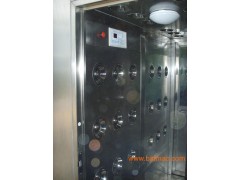 6、风淋室配12个多角度可调全不锈钢喷嘴,左右双侧吹淋;外转子大风量低噪风淋室风机,面风速大于25m/s,确保能让风吹到货物上达到18m/s,符合标准;