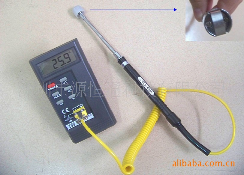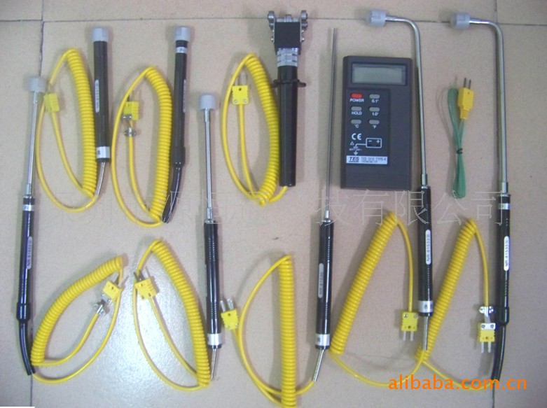 1、 下图片为TES-1310温度表与各款探头实拍组合图片,组合使用,可用来测量空气、液体、固体、滑动等各类产品!