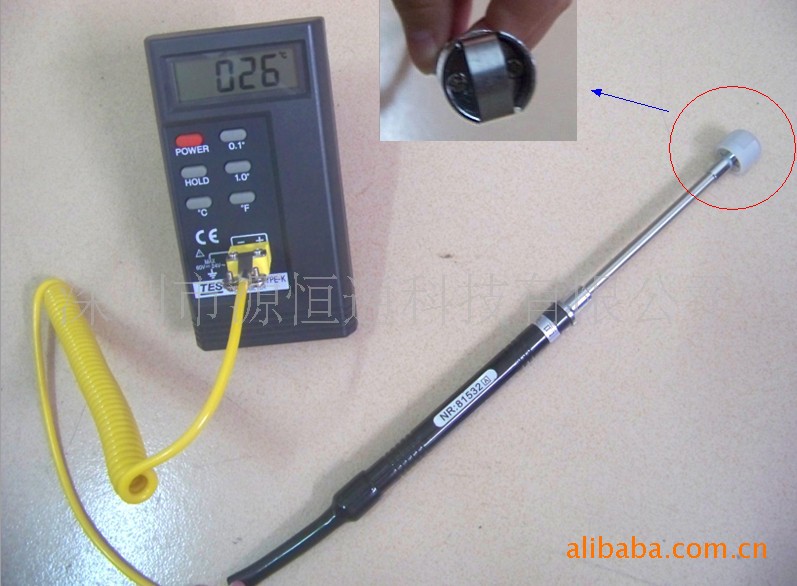1、下图片为TES-1310温度表与表面探头NR-81532A实拍组合图片,组合使用,可用来测量空气、固体状态产品的温度!(接触面为片状,耐用)