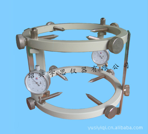 本测定仪由上环、下环、接触杆、千分表和紧定螺钉组成,〔参见附图〕。
