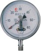 当被测介质的压力作用于膜盒时,其自由端产生相应弹性变形一位移,经拔杆带动传动机构放大,由指示装置将被测压力在仪表度盘上指示出来。同时指针带动电接点装置的活动触点与设定指针上的触点(上限或下限)相接触的瞬时,致使控制系统接通或断开电路,以达到自动控制和发信报警的目的。