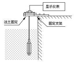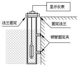 在敞口的容器中测量静态液位时,把液位变送器直接投入到容器底部,在容器开口处用尼龙带或三脚可调安装架等将电缆线(接线盒)固定即可。在流动的液体中测量液位时,因介质波动较大,可以在液体中插入一根Φ45mm的钢管,同时在水流方向的反面不同高度的管壁上打若干小孔,使液体流入管内。另一种方法是在液体底部加装阻尼装置,以过滤泥沙和消除动态压力和波浪对测量的影响。