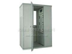 风淋室是人员或者货物进入无尘车间等洁净场所所必需的一种设备,通过风淋室时,风淋室 两面的喷嘴向人员或者货物用强劲干净的空气吹淋,有效地将人员和货物上的灰尘吹净,达到减少人和货物进出洁净场所的尘埃。风淋室的两道门电子互锁,不能同时开启,防止未被净化的空气进入洁净室。