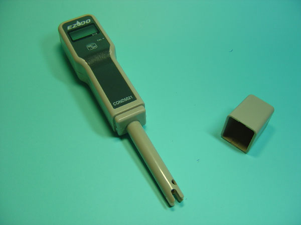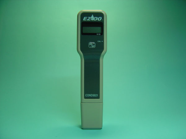 6.将电置入待测液中并轻轻摇晃仪器后停止、待显示值稳定并乘以10(EZDO 5022即为电导度值)此即为待测液的电导度值‧
