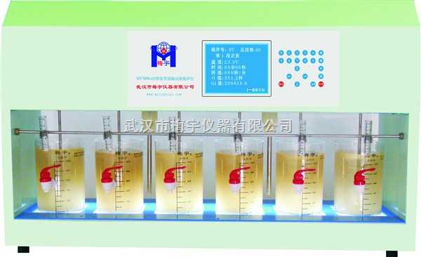 混凝试验搅拌器 - MY3000-6H 搅拌机、搅拌器、搅拌仪、六联搅拌机、六联搅拌器、六联搅拌仪、电动搅拌机、电动搅拌器、电动搅拌仪、混凝试验搅拌机、混凝试验搅拌器、混凝试验搅拌仪、混凝实验搅拌机、混凝实验搅拌器、混凝实验搅拌仪、水质检测仪器、水质监测仪器 主要性能: 1、微电脑控制、兰白色液晶屏高清晰显示,可根据菜单和提示进行各项操作,在搅拌中同时动态显示各种参数 2、六根搅拌轴同步运行,每根搅拌轴能以同样的时间、转速运行 3、简单易学的全中文微电脑程序编程方法,程序多可存储12种,每种程序自动无级变速10次 4、搅拌轴采用微电脑芯片控制精确可靠的步进电机驱动,转速精确度高,重复性误差为零 5、自动加药系统可在搅拌开始时自动加药并计时;根据需要可设定多次自动加药 6、搅拌杆自动升降系统能在搅拌程序完成后自动升起;沉淀结束时有语音信号提示 7、自动测温功能可根据温度和其他参数自动计算和动态显示G值、GT值,搅拌结束时自动显示GT值结果 8、免费配送专用圆形(或方形)有机玻璃试验杯和试管 9、试验杯底座配有照明光源,观察絮凝效果更清楚 10、全不锈钢机箱制造,外形优雅,美观大方主要参数: 可设程序数量: 12种;每种自动无级变速10次 速度梯度G值: 10 ~ 1000秒 -1 转速范围: 10 ~ 800转/分 ± 0.01% 时间范围: 0 ~ 99 分59秒 x 10 ± 0.01秒 测温范围: 0 ~ 50℃ ± 0.1℃ 电 压: ~ 220V ± 5%